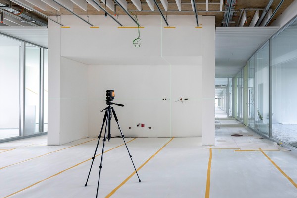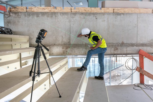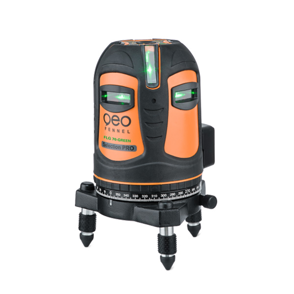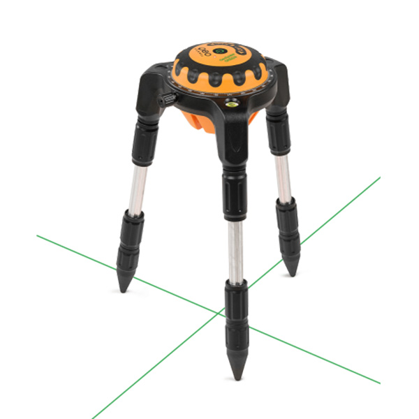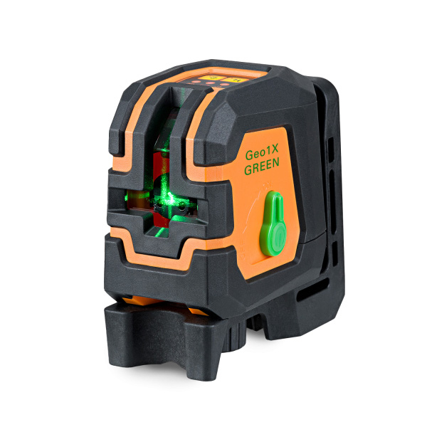 Cross line laser with clearly visible green laser lines. Robust rubberised housing, easy operation – the ideal partner for levelling work indoors.